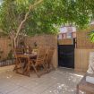 Disfruta de esta luminosa casa vacacional de dos plantas, situada en una ubicación privilegiada, con una terraza privada de 30 m² rodeada de plantas que garantizan total privacidad. Relájate en la tumbona al sol, disfruta de comidas al aire libre o descansa en el acogedor sofá chill-out.