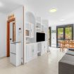 La cocina completamente equipada tiene acceso directo a la terraza y cuenta con todos los electrodomésticos que puedas necesitar. El salón dispone de un cómodo sofá cama y televisión de pantalla plana. En la planta baja también encontrarás un baño con ducha y un cuarto de lavandería con lavadora.