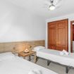 En la planta superior hay dos dormitorios con ventilador de techo: uno con cama de matrimonio y otro con dos camas individuales, además de un segundo baño amplio con gran ducha.